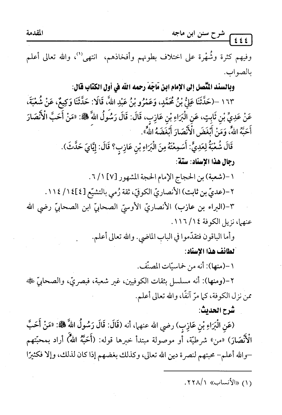 163 - (حَدَّثَنَا عَليُّ بْنُ مُحَمَّدٍ، وَعَمْرُو بْنُ عَبْدِ الله، قَالَا: حَدَّثَنَا وَكِيعٌ، عَنْ شُعْبَةَ، عَنْ عَدِيِّ بْنِ ثَابِتٍ، عَنِ الْبَرَاءِ بْنِ عَازِبٍ، قَالَ: قَالَ رَسُولُ الله -صلى الله عليه وسلم-: "مَنْ أَحَبَّ الأَنْصَارَ أَحَبَّهُ الله، وَمَنْ أَبْغَضَ الأَنْصَارَ أَبْغَضَهُ الله".