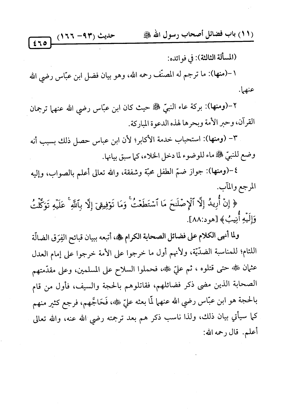 1 - (منها): ما ترجم له المصنّف رحمه الله، وهو بيان فضل ابن عبَّاس رضي الله عنهما.