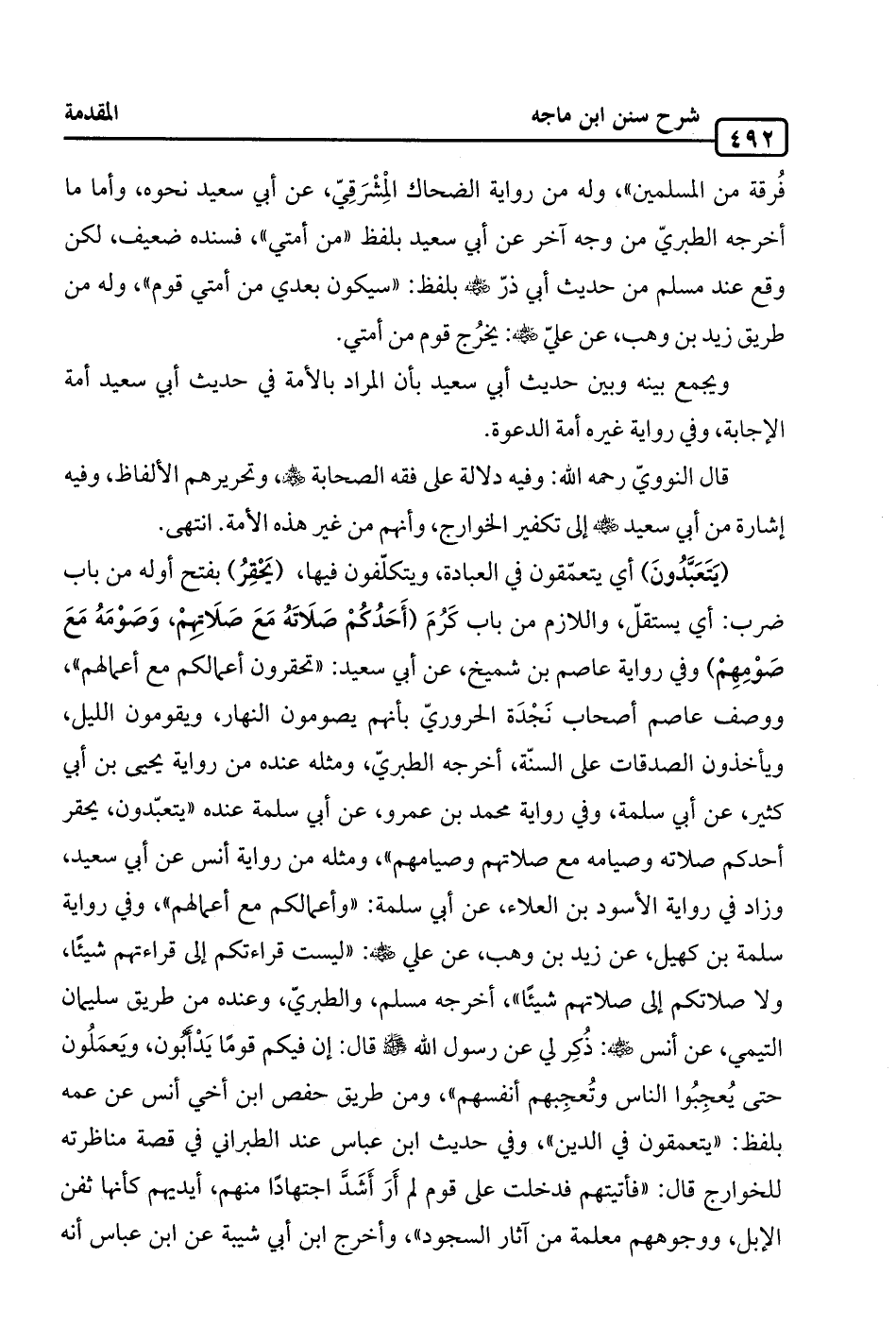 قال النوويّ رحمه الله: وفيه دلالة على فقه الصّحابة -رضي الله عنهم-، وتحريرهم الألفاظ، وفيه إشارة من أبي سعيد -رضي الله عنه- إلى تكفير الخوارج، وأنهم من غير هذه الأمة. انتهى.