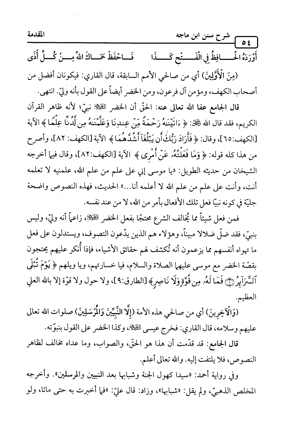 قال الجامع عفا الله تعالى عنه: الحقّ أن الخضر عليه السلام نبيّ؛ لأنه ظاهر القرآن الكريم، فقد قال الله عز وجل: {آتَيْنَاهُ رَحْمَةً مِنْ عِنْدِنَا وَعَلَّمْنَاهُ مِنْ لَدُنَّا عِلْمًا} الآية [الكهف: 65] , وقال: {فَأَرَادَ رَبُّكَ أَنْ يَبْلُغَا أَشُدَّهُمَا} الآية [الكهف: 82]، وأصرح من هذا كله قوله: {وَمَا فَعَلْتُهُ عَنْ أَمْرِي} الآية [الكهف: 82]، وقال فيما أخرجه الشيخان من حديثه الطويل: "يا موسى إني على علم من علم الله، علمنيه لا تعلمه أنت، وأنت على علم من علم الله لا أعلمه أنا ... " الحديث، فهذه النصوص واضحة جليّة في كونه نبيّا فعل تلك الأفعال بأمر من الله، لا من عند نفسه.