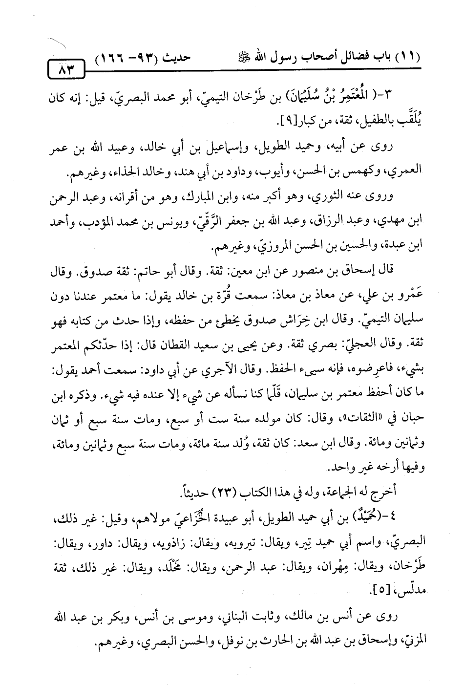 3 - (الْمُعْتَمِرُ بْنُ سُلَيُمانَ) بن طَرْخان التيميّ، أَبو محمد البصريّ، قيل: إنه كان يُلَقَّب بالطفيل، ثقة، من كبار [9].