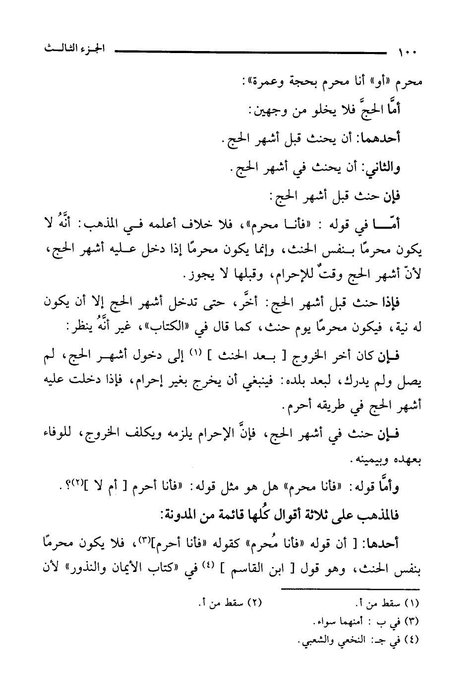 فإذا حنث قبل أشهر الحج: أخَّر، حتى تدخل أشهر الحج إلا أن يكون له نية، فيكون محرمًا يوم حنث، كما قال في "الكتاب"، غير أنَّهُ ينظر: