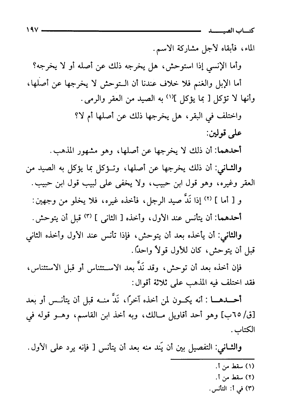 والثاني: أن ذلك يخرجها عن أصلها، وتؤكل بما يؤكل به الصيد من العقر وغيره، وهو قول ابن حبيب، ولا يخفى على لبيب قول ابن حبيب.