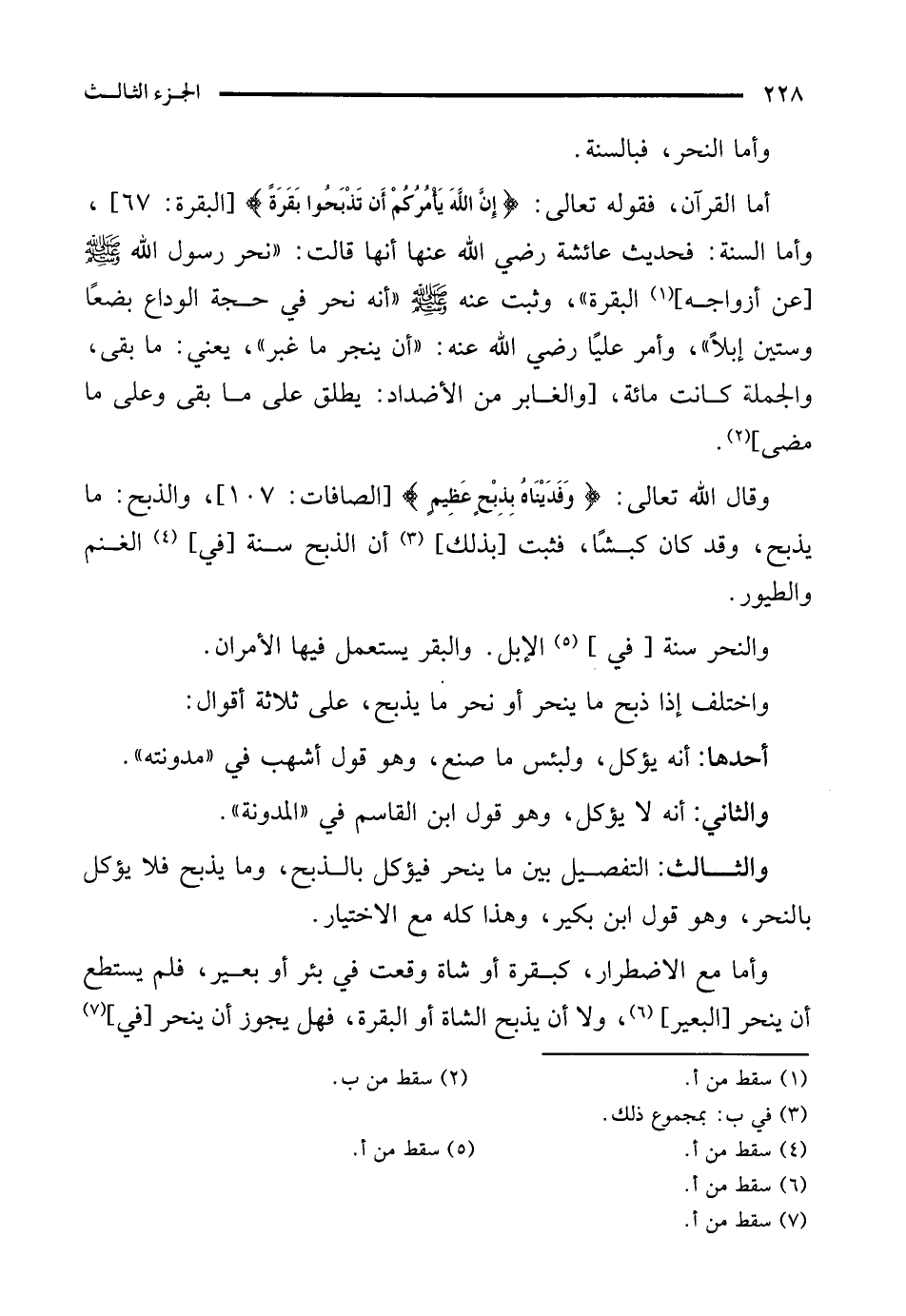 والنحر سنة [في] (¬5) الإبل. والبقر يستعمل فيها الأمران.