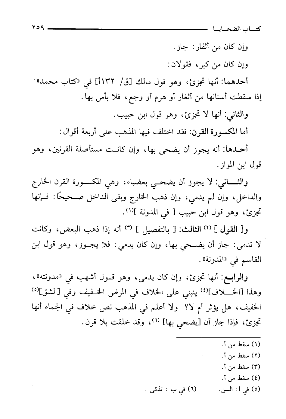 أما المكسورة القرن: فقد اختلف فيها المذهب على أربعة أقوال: