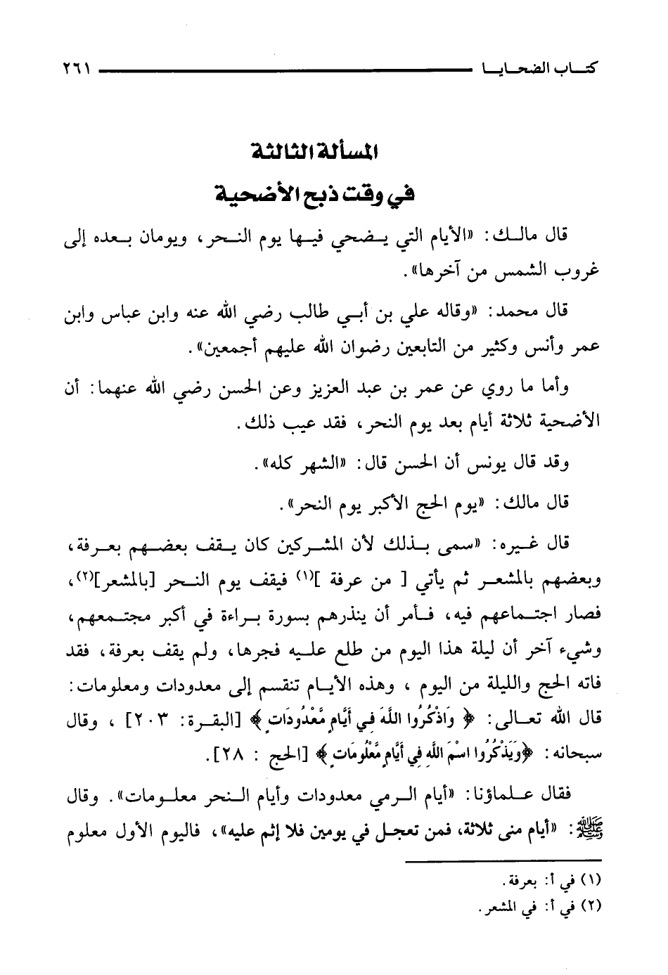 المسألة الثالثة في وقت ذبح الأضحية