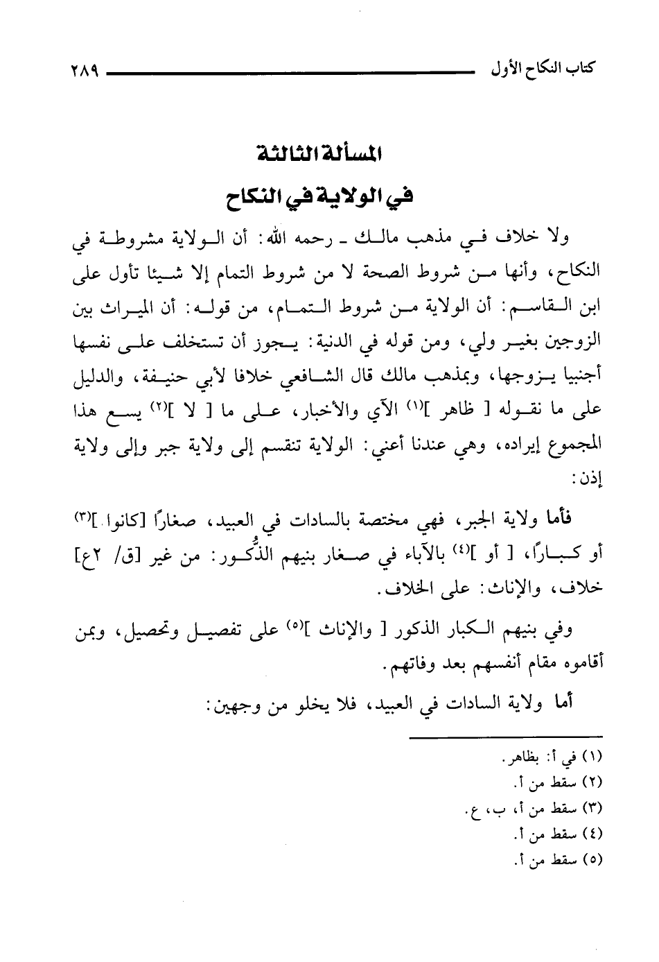 المسألة الثالثة في الولاية في النكاح