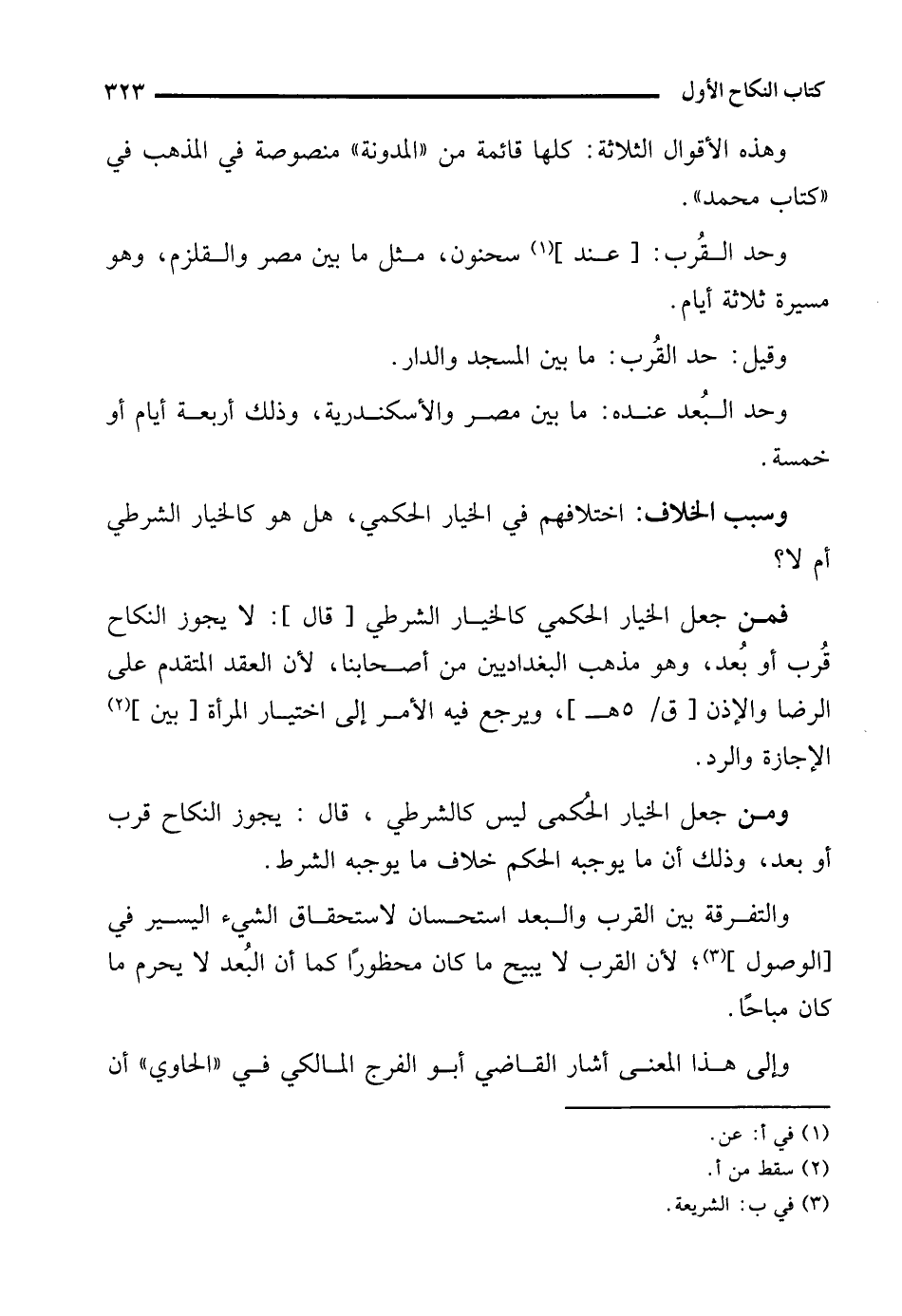 ومن جعل الخيار الحكمى ليس كالشرطي، قال: يجوز النكاح قرب أو بعد، وذلك أتى ما يوجبه الحكم خلاف ما يوجبه الشرط.