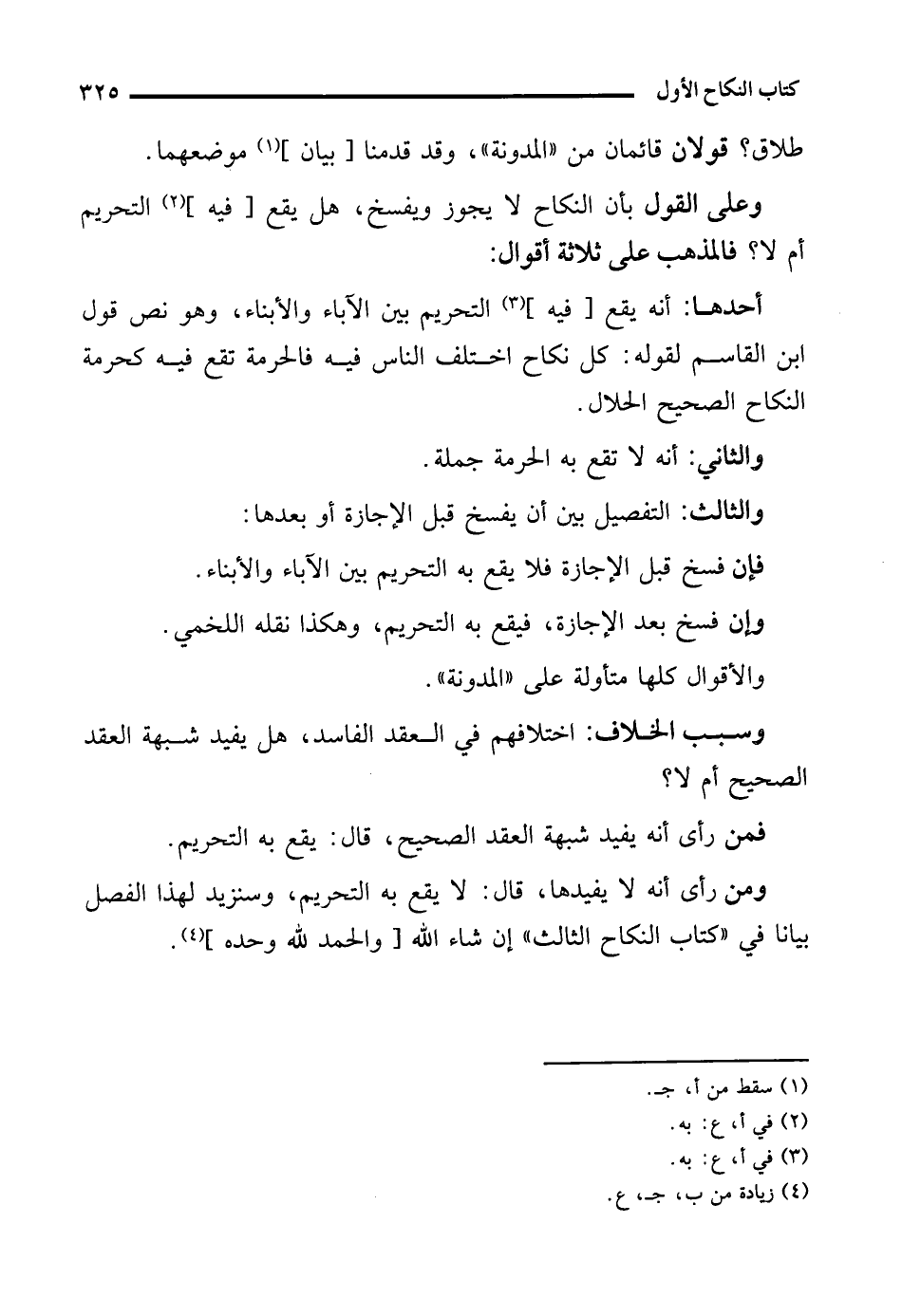 أحدها: أنه يقع [فيه] (¬3) التحريم بين الآباء والأبناء، وهو نص قول ابن القاسم لقوله: كل نكاح اختلف الناس فيه فالحرمة تقع فيه كحرمة النكاح الصحيح الحلال.