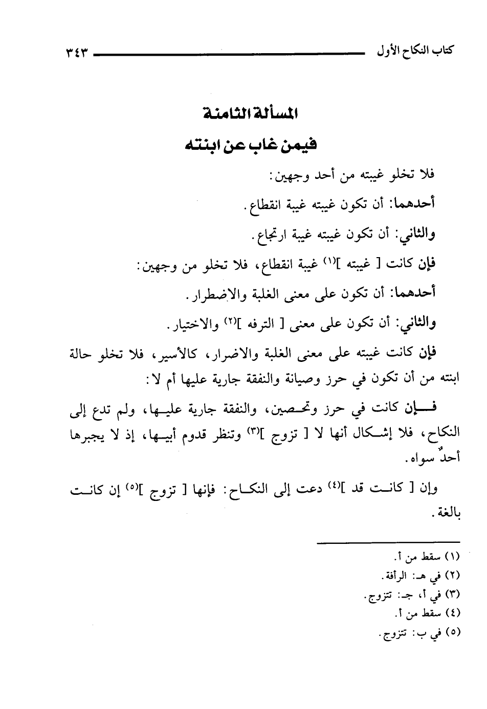 المسألة الثامنة فيمن غاب عن ابنته