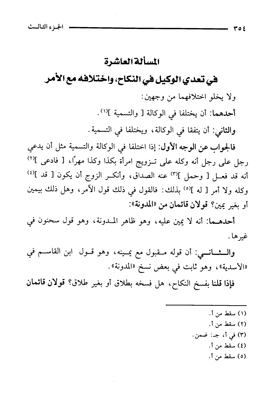 المسألة العاشرة في تعدي الوكيل في النكاح، واختلافه مع الأمر