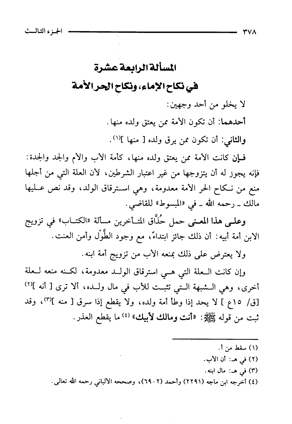 المسألة الرابعة عشرة في نكاح الإماء، ونكاح الحر الأمة