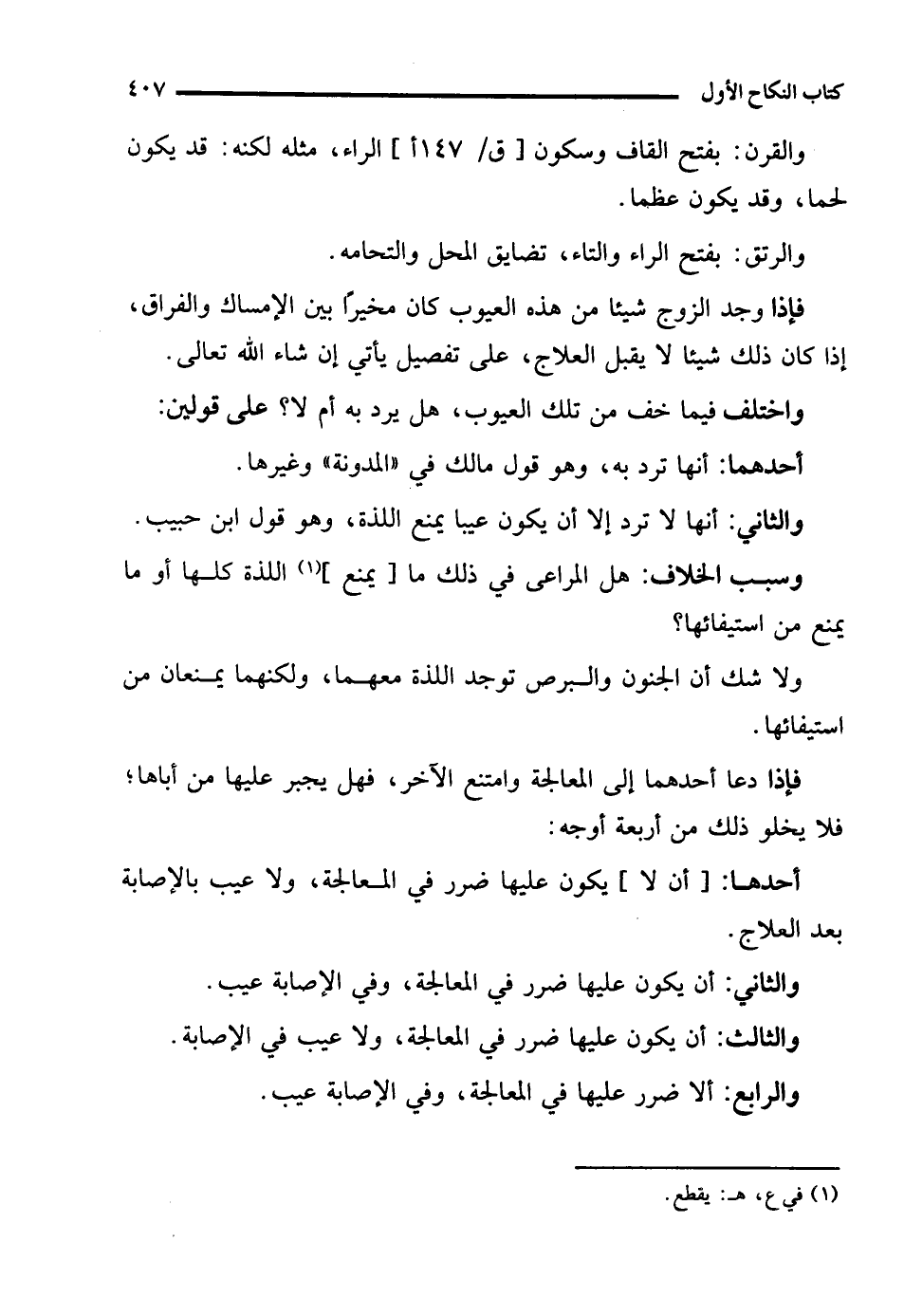 فإذا وجد الزوج شيئًا من هذه العيوب كان مخيرًا بين الإمساك والفراق، إذا كان ذلك شيئًا لا يقبل العلاج، على تفصيل يأتي إن شاء الله تعالى.