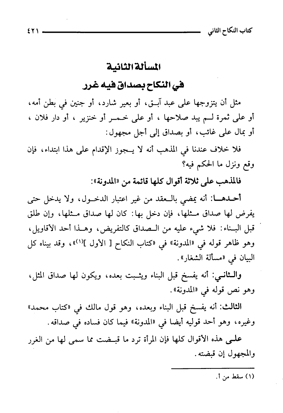 فالمذهب على ثلاثة أقوال كلها قائمة من "المدونة":