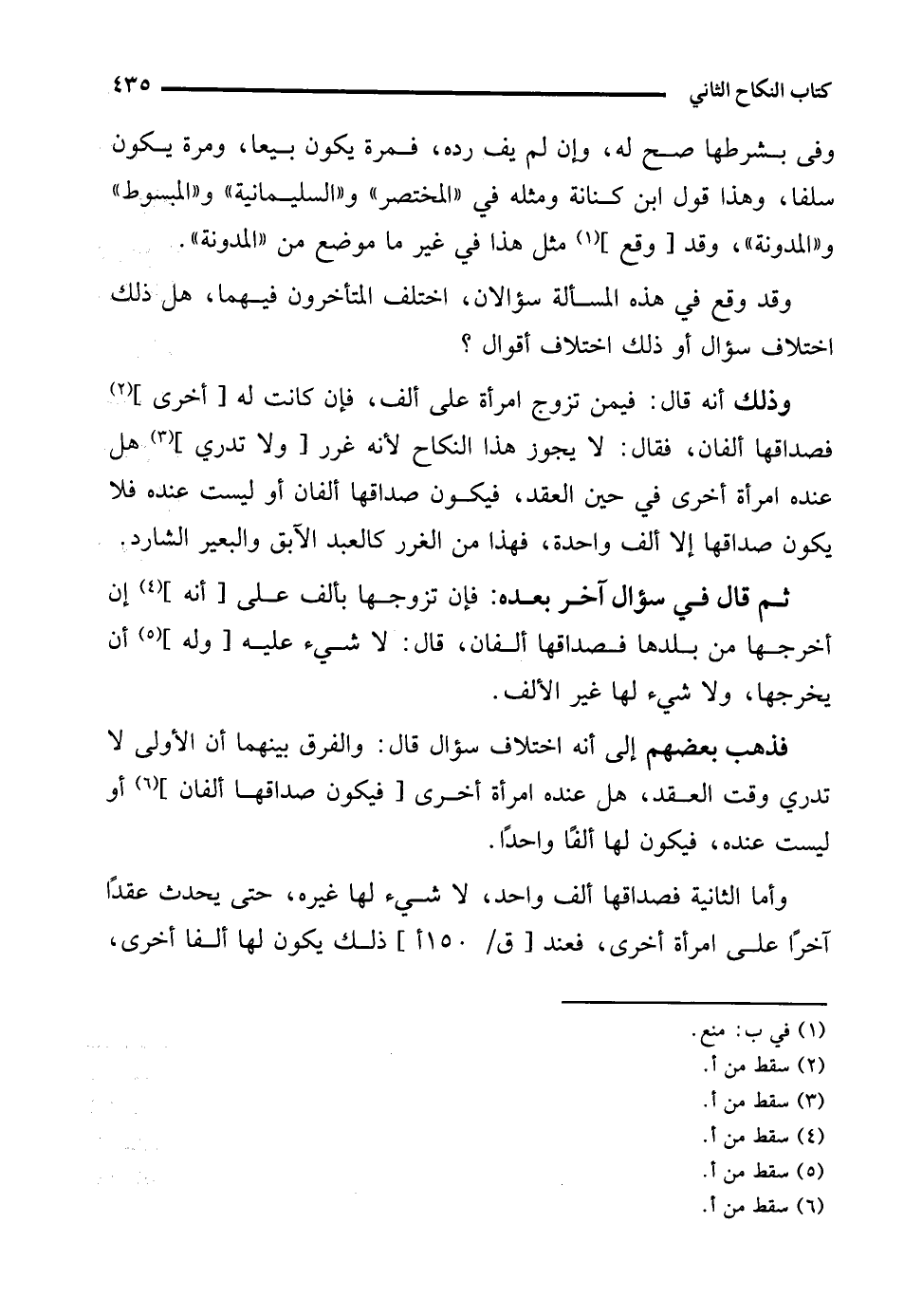 فذهب بعضهم إلى أنه اختلاف سؤال قال: والفرق بينهما أن الأولى لا تدري وقت العقد، هل عنده امرأة أخرى [فيكون صداقها ألفان] (¬6) أو ليست عنده، فيكون لها ألفًا واحدًا.