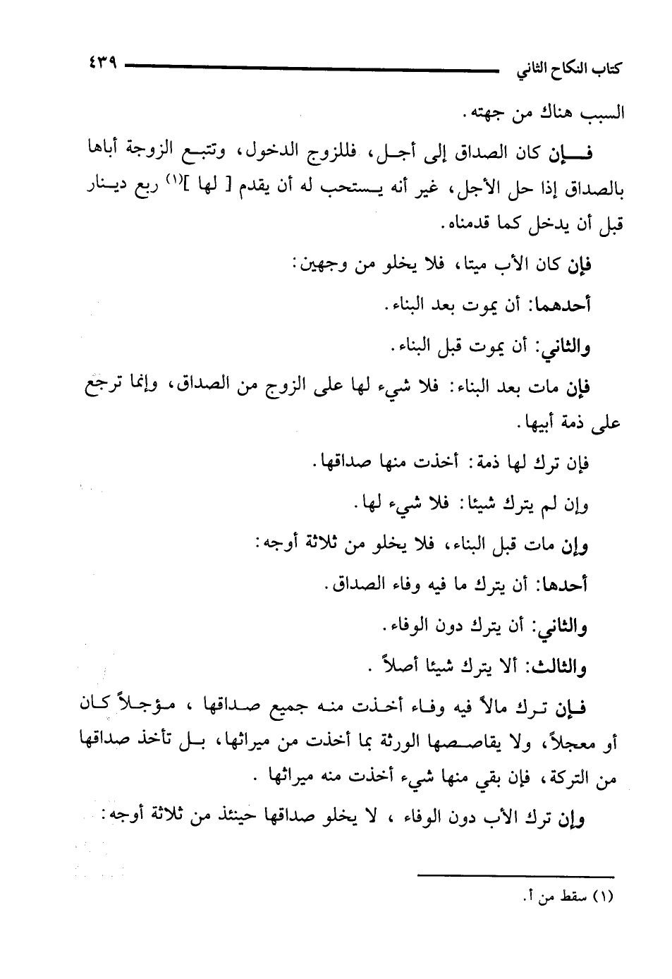 وإن مات قبل البناء، فلا يخلو من ثلاثة أوجه: