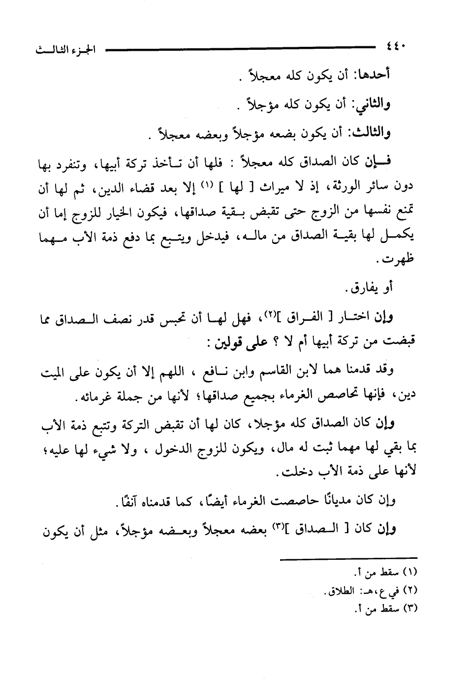 والثالث: أن يكون بعضه مؤجلًا وبعضه معجلًا.