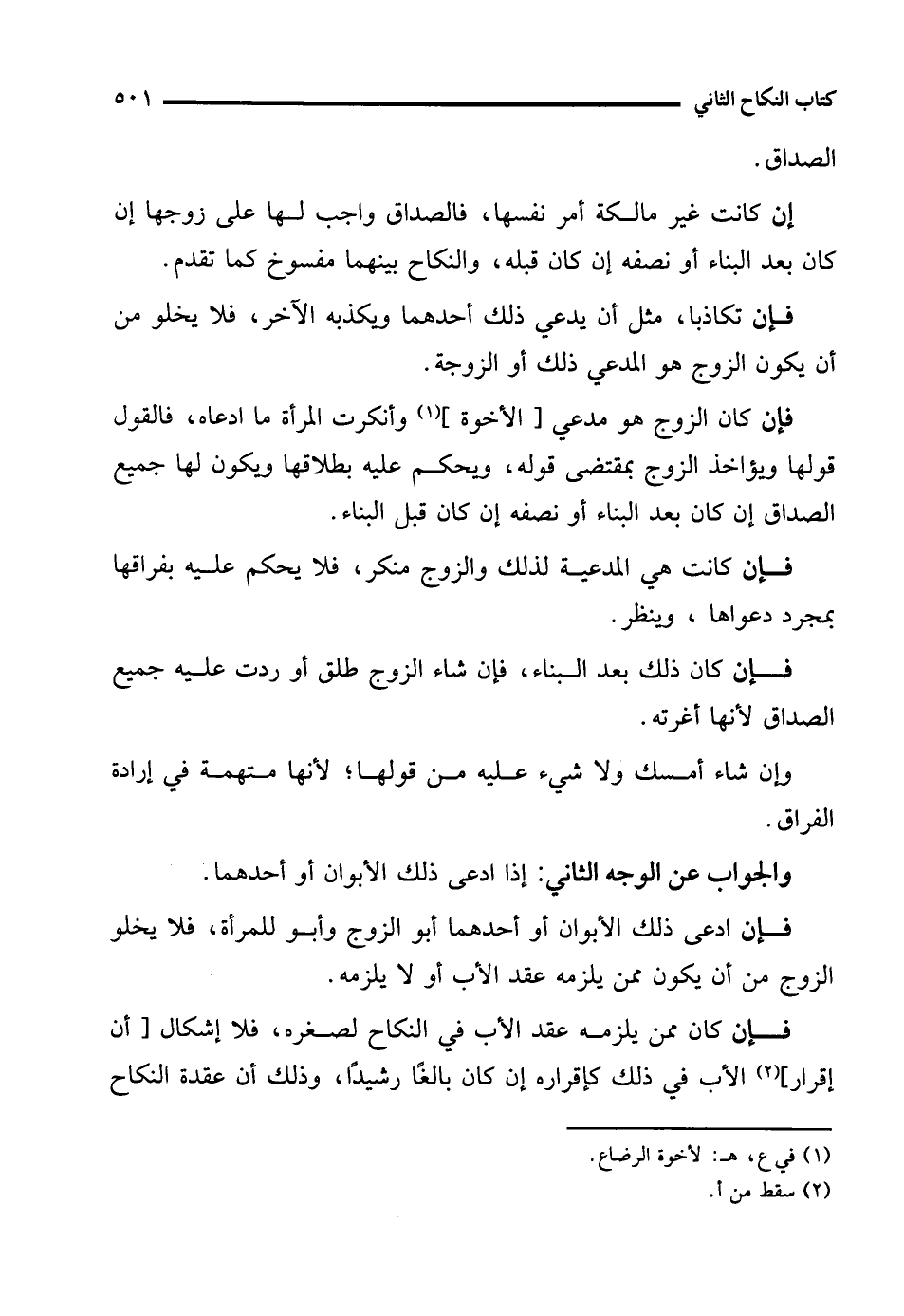 فإن كان الزوج هو مدعي [الأخوة] (¬1) وأنكرت المرأة ما ادعاه، فالقول قولها ويؤاخذ الزوج بمقتضى قوله، ويحكم عليه بطلاقها ويكون لها جميع الصداق إن كان بعد البناء أو نصفه إن كان قبل البناء.