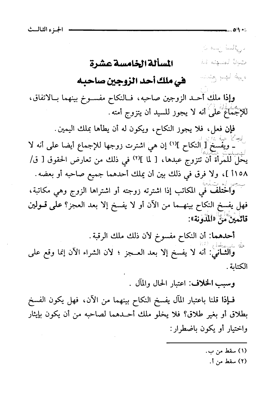 المسألة الخامسة عشرة في ملك أحد الزوجين صاحبه