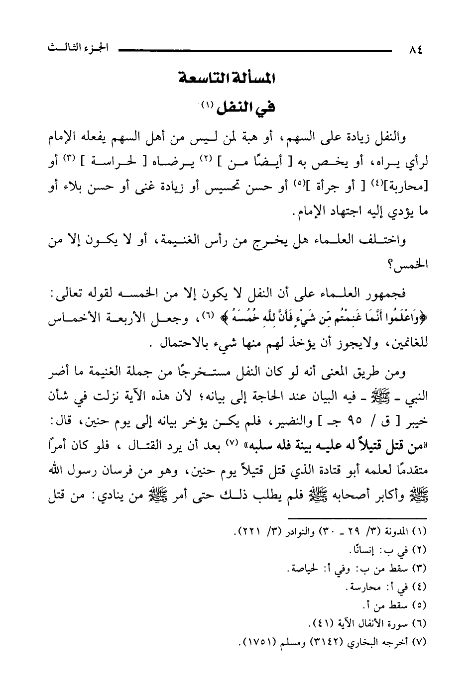 المسألة التاسعة في النفل (¬1)