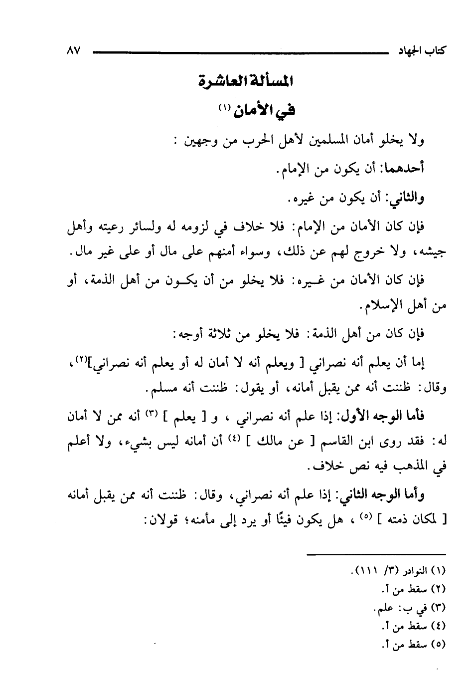 ولا يخلو أمان المسلمين لأهل الحرب من وجهين: