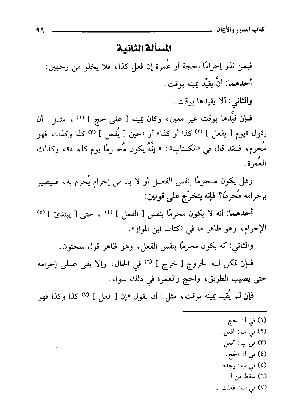 فيمن نذر إحرامًا بحجة أو عُمرة إن فعل كذا، فلا يخلو من وجهين: