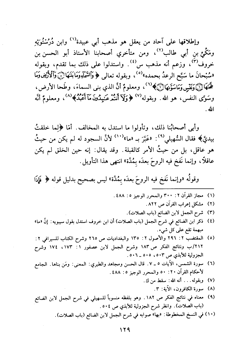 وأبى أصحابنا ذلك، وتأولوا ما استدل به المخالف. أما {لِمَا خَلَقْتُ بِيَدَيَّ} فقال السهيلي: "عبر بـ"ما" لأن السجود له لم يكن من حيث هو عاقل، بل من حيث الأمر كالقبلة. وقد يقال: أنه حين الخلق لم يكن عاقلًا، وإنما نفخ فيه الروح بعده بمدة" انتهى هذا التأويل.