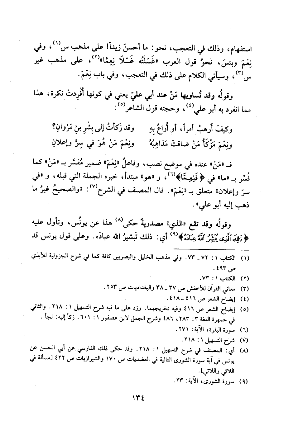 فـ"من" عنده في موضع نصب، وفاعل "نعم" ضمير مفسر بـ"من" كما فسر بـ"ما" في {فَنِعِمَّا}، و"هو" مبتدأ، خبره الجملة التي قبله، و"في سر وإعلان" متعلق بـ"نعم". قال المصنف في الشرح: "والصحيح غير ما ذهب إليه أبو علي".