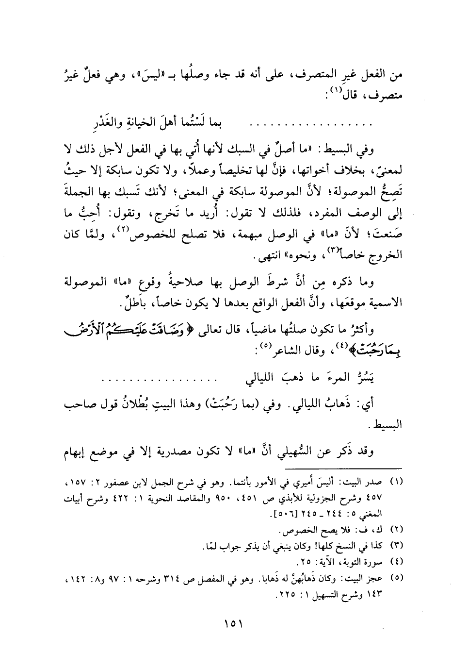 أي: ذهاب الليالي. وفي (بما رحبت) وهذا البيت بطلان قول صاحب البسيط.