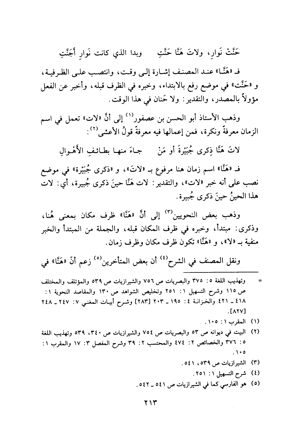 ونقل المصنف في الشرح أن بعض المتأخرين زعم أن "هنا" في