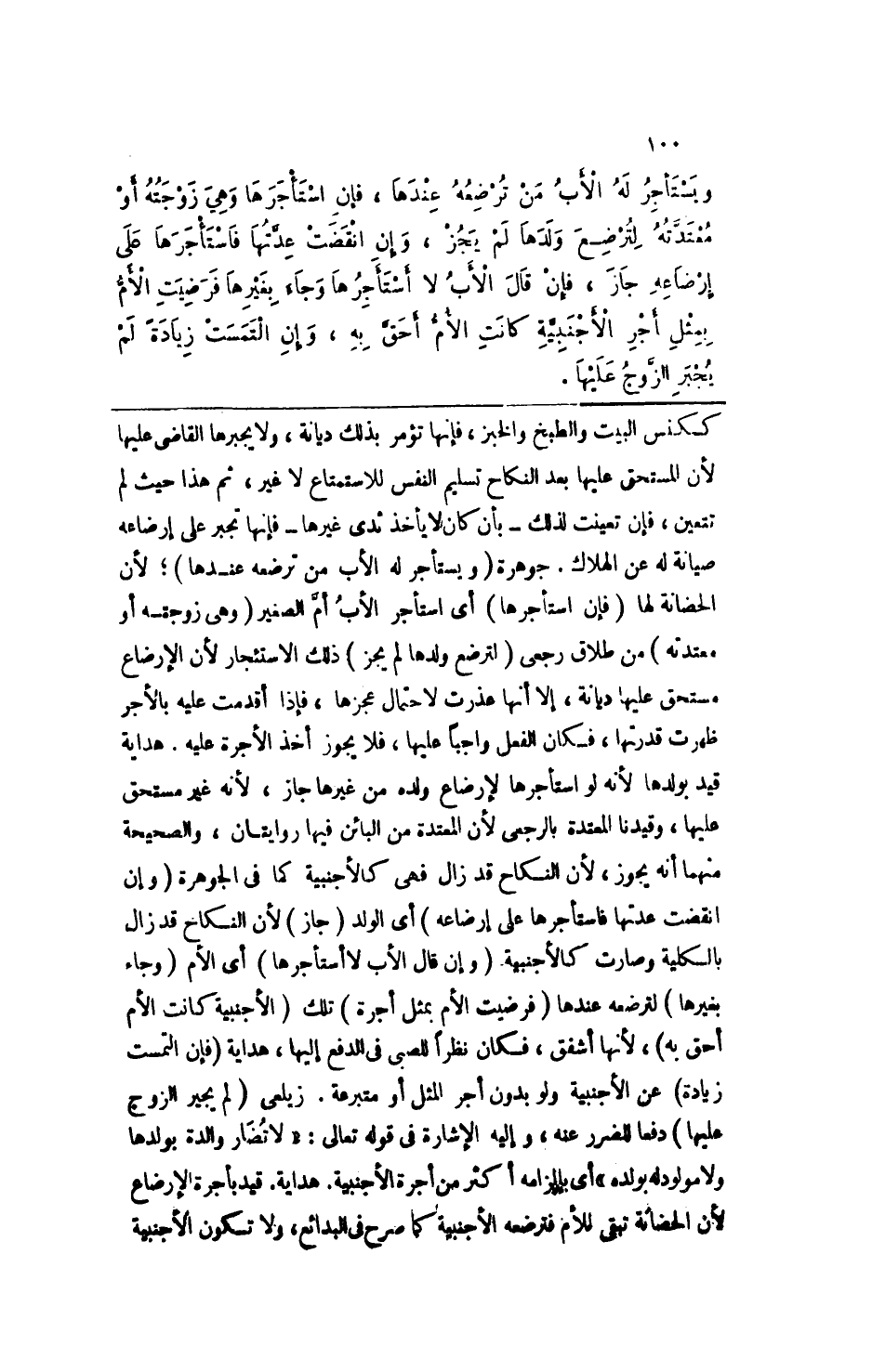 ككنس البيت والطبخ والخبز، فإنها تؤمر بذلك ديانة، ولا يجبرها القاضي عليها لأن المستحق عليها بعد النكاح تسليم النفس للاستمتاع لا غير، ثم هذا حيث لم تتعين، فإن تعينت لذلك - بأن كان لا يأخذ ثدي غيرها - فإنها تجبر على إرضاعه صيانة له على الهلاك. جوهرة (ويستأجر له الأب من ترضعه عندها) ؛ لأن الحضانة لها (فإن استأجرها) أي استأجر الأب أم الصغير (وهي زوجته أو معتدته) من طلاق رجعي (لترضع ولدها لم يجز) ذلك الاستئجار لأن الإرضاع مستحق عليها ديانة، إلا أنها عذرت لاحتمال عجزها، فإذا أقدمت عليه بالأجر ظهرت قدرتها، فكان الفعل واجباً عليها، فلا يجوز أخذ الأجرة عليه. هداية قيد بولدها لأنه لو استأجرها لإرضاع ولده من غيرها جاز، لأنه غير مستحق عليها، وقيدنا المعتدة بالرجعي لأن المعتدة من البائن فيها روايتان، والصحيحة منهما أنه يجوز، لأن النكاح قد زال فهي كالأجنبية كما في الجوهرة (وإن انقضت عدتها فاستأجرها على إرضاعه) أي الولد (جاز) لأن النكاح قد زال بالكلية وصارت كالأجنبية (وإن قال الأب لا أستأجرها) أي الأم (وجاء بغيرها) لترضعه عندها (فرضيت الأم بمثل أجرة) تلك (الأجنبية كانت الأم أحق به) ، لأنها أشفق، فكان نظراً للصبي في الدفع إليها، هداية (فإن التمست زيادة) عن الأجنبية ولو بدون أجر المثل أو متبرعة. زيلعي (لم يجبر الزوج عليها) دفعاً للضرر عنه، وإليه الإشارة في قوله تعالى: {لا تضار والدة بولدها ولا مولود له بولده} أي بإلزامه أكثر من أجرة الأجنبية. هداية. قيد بأجرة لإرضاع لأن الحضانة تبقى للأم فترضعه الأجنبية كما صرح في البدائع، ولا تكون الأجنبية