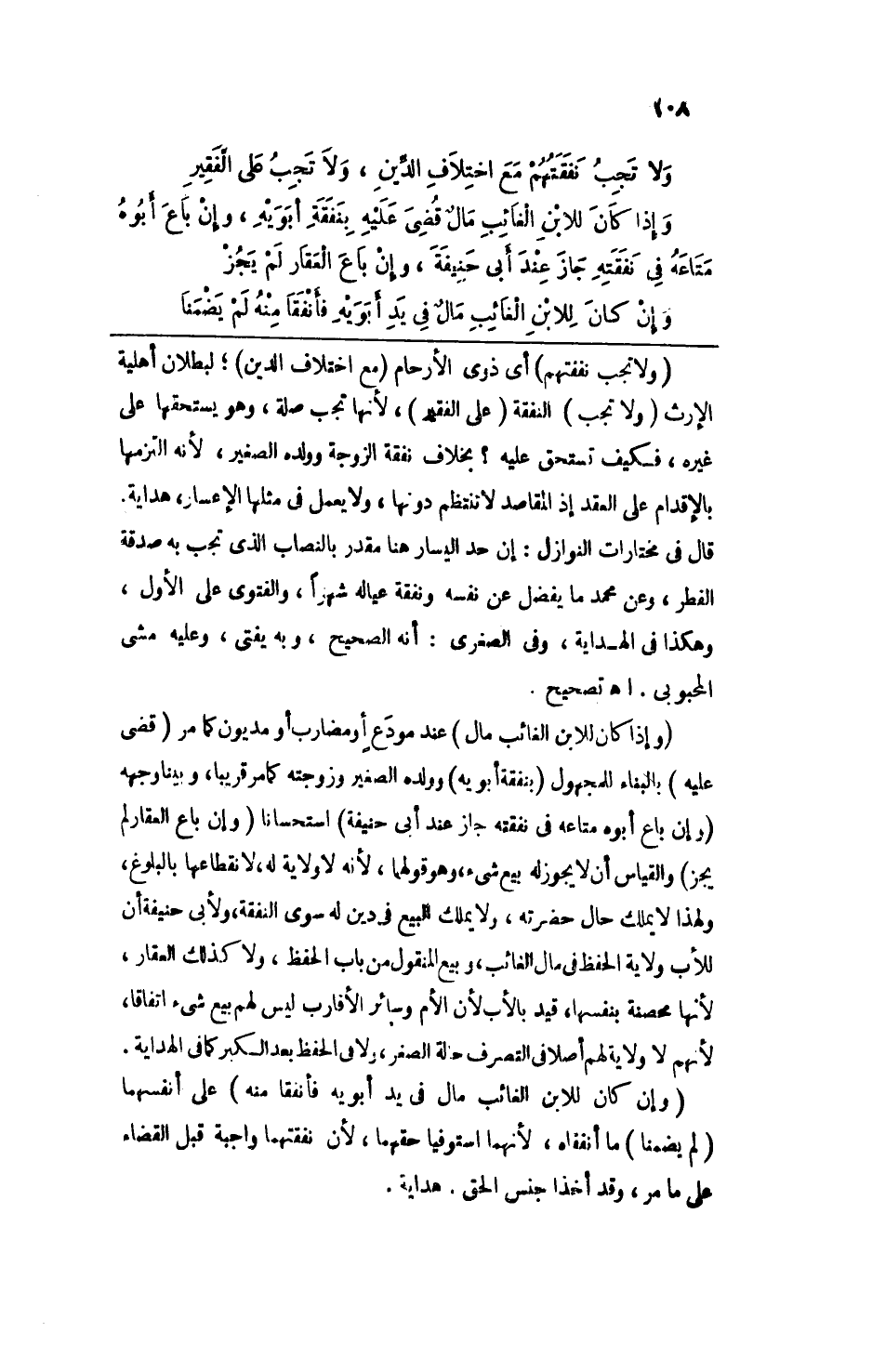 (ولا تجب نفقتهم) أي ذوي الأرحام (مع اختلاف الدين) ؛ لبطلان أهلية الإرث (ولا تجب) النفقة (على الفقير) ، لأنها تجب صلة، وهو يستحقها على غيره، فكيف تستحق عليه؟ بخلاف نفقة الزوجة وولده الصغير، لأنه التزمها بالإقدام على العقد إذ المقاصد لا تنتظم دونها، ولا يعمل في مثلها الإعسار، هداية.