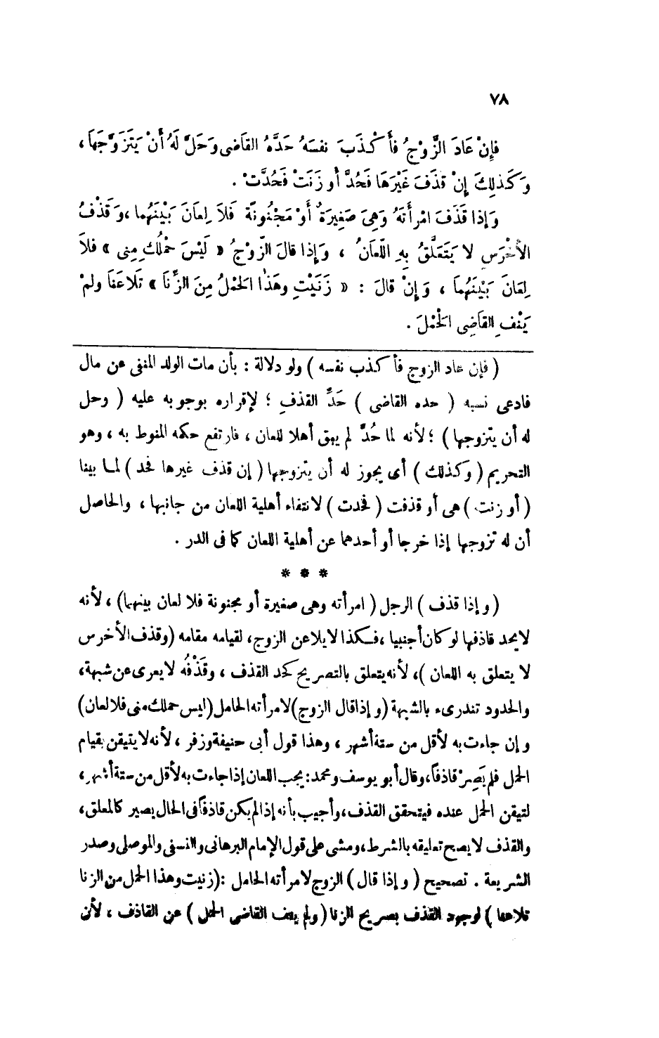 (وإذا قذف) الرجل (امرأته وهي صغيرة أو مجنونة فلا لعان بينهما) ، لأنه لا يحد قاذفها لو كان أجنبيا، فكذا لا يلاعن الزوج، لقيامه مقامه (وقذف الأخرس لا يتعلق به اللعان) ، لأنه يتعلق بالتصريح كحد القذف، وقذفه لا يعرى عن شبهة، والحدود تندرئ بالشبهة (وإذا قال الزوج) لامرأته الحامل (ليس حملك مني فلا لعان) وإن جاءت به لأقل من ستة أشهر، وهذا قول أبي حنيفة وزفر، لأنه لا يتيقن بقيام الحمل فلم يصر قاذفاً، وقال أبو يوسف ومحمد: يجب اللعان إذا جاءت به لأقل من ستة أشها، لتيقن الحمل عنده فيتحقق القذف، وأجيب بأنه إذا لم يكن قاذفاً في الحال يصير كالمعلق، والقذف لا يصح تعليقه بالشرط، ومشى على قول الإمام البرهاني والنسفي والموصلي وصدر الشريعة. تصحيح (وإذا قال) الزوج لامرأته الحامل: (زنيت وهذا الحمل من الزنا تلاعنا) لوجود القذف بصريح الزنا (ولم ينف القاضي الحمل) عن القاذف، لأن