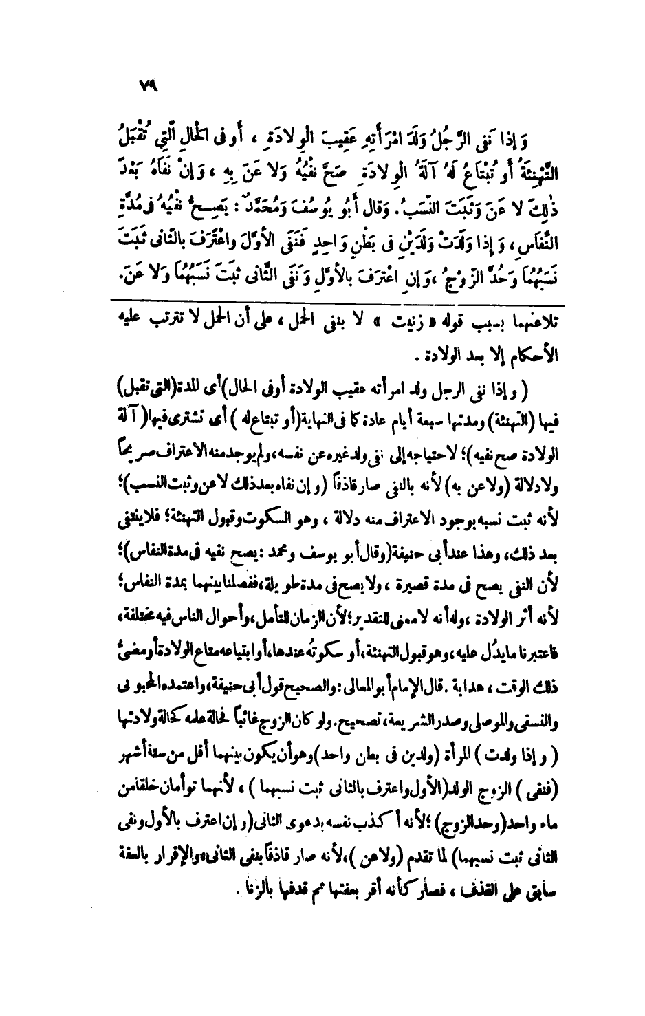 وإذا نفى الرجل ولد امرأته عقيب الولادة، أو في الحال التي تقبل التهنئة أو تبتاع له آلة الولادة صح نفيه ولاعن به، وإن نفاه بعد ذلك لاعن وثبت النسب. وقال أبو يوسف ومحمدٌ: يصح نفيه في مدة النفاس، وإذا ولدت ولدين في بطنٍ واحدٍ فنفى الأول واعترف بالثاني ثبت نسبهما وحد الزوج، وإن اعترف بالأول ونفى الثاني ثبت نسبهما ولاعن.