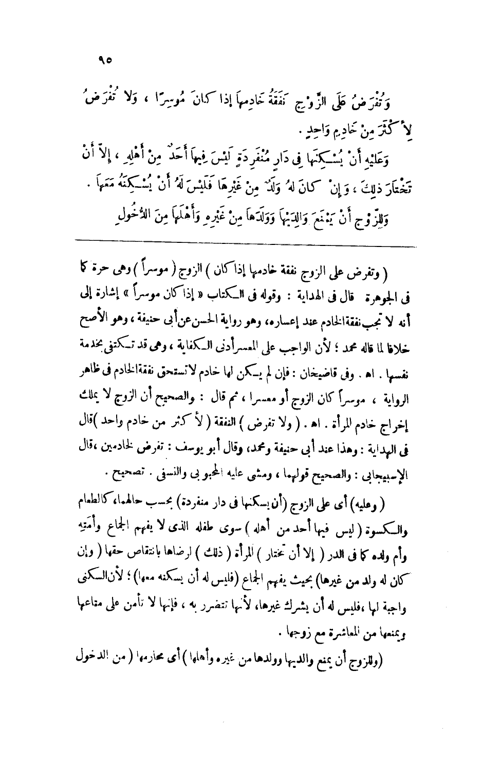 وتفرض على الزوج نفقة خادمها إذا كان موسراً، ولا تفرض لأكثر من خادمٍ واحدٍ.