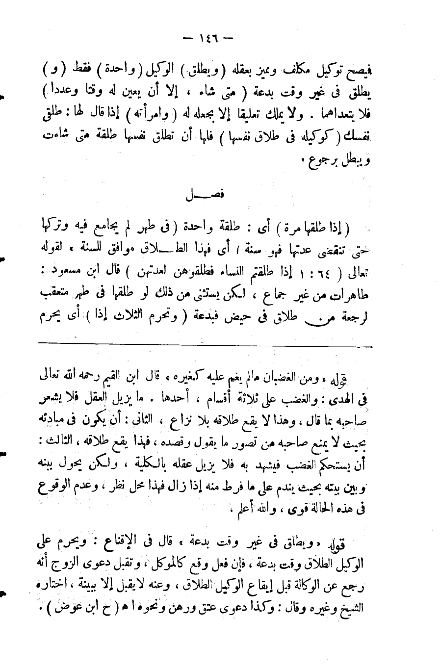 1 - (إذا طلقها مرة) أي طلقة واحدة (في طهر لم يجامع فيه وتركها حتى تنقضي عدتها فهو سنة) أي فهذا الطلاق موافق للسنة لقوله تعالى {إذا طلقتم النساء فطلقوهن لعدتهن} قال ابن مسعود طاهرات من غير جماع لكن يستثنى من ذلك لو طلقها في طهر متعقب للرجعة من طلاق في حيض فبدعة (فتحرم الثلاث إذا) أي يحرم