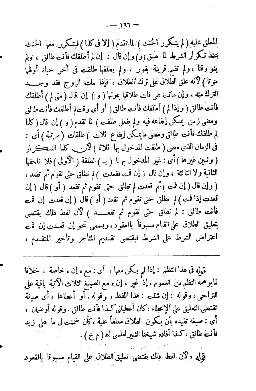 المعلق عليه ) لم يتكرر ( الحنث ) لما تقدم ( إلا في كلما ) فيتكرر معها الحنث عند تكرر الشرط لما سبق ( و ) إن قال إن ( لم أطلقك فأنت طالق ولم ينو وقتا ولم تقم قرينة بفور ولم يطلقها طلقت في آخر حياة أولهما موتا ) لأنه علق الطلاق على ترك الطلاق فإذا مات الزوج فقد وجد الترك منه وإن ماتت هي فات طلاقها بموتها ( و ) إن قال ( متى لم ) أطلقك فأنت طالق ( أو إذا لم ) أطلقك فأنت طالق ( أو أي وقت لم أطلقك فأنت طالق ومضى زمن يمكن إيقاعه فيه ولم يفعل طلقت ) لما تقدم وإن قال ( كلما لم أطلقك فأنت طالق ومضى ما يمكن إيقاع ثلاث ) طلقات ( مرتبة ) أي واحدة بعد واحدة ( فيه ) أي في الزمن الذي مضى ( طلقت المدخول بها ثلاثا ) لأن كلما للتكرار ( وتبين غيرها ) أي غير المدخول بها ( ب ) الطلقة ( الأولى ) فلا تلحقها الثانية ولا الثالثة ( و إن ) قال ( إن قمت فقعدت ) لم تطلق حتى تقوم ثم تقعد ( أو ) قال إن قمت ( ثم قعدت ) لم تطلق حتى تقوم ثم تقعد ( أو ) قال إن ( قعدت إذا قمت ) لم تطلق حتى تقوم ثم تقعد ( أو ) قال ( إن قعدت إن قمت فأنت طالق لم تطلق حتى تقوم ثم تقعد ) لأن لفظ ذلك يقتضي تعليق الطلاق على القيام مسبوقا بالقعود ويسمى نحو إن قعدت إن قمت اعتراض الشرط على الشرط فيقتضي تقديم المتأخر وتأخير المتقدم