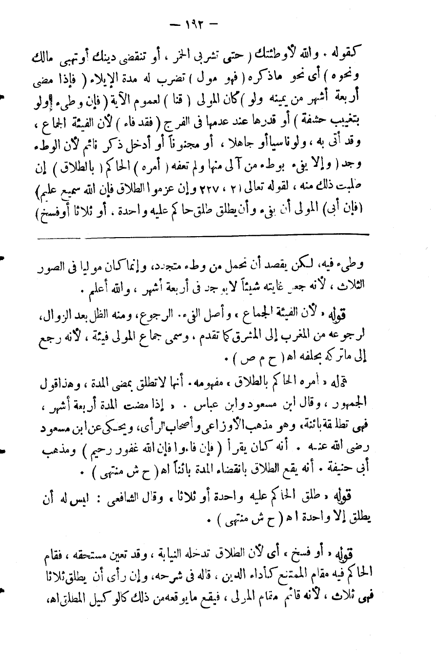 كقوله والله لاوطئتك ( حتى تشربي الخمر أو تعطيني دينك أو تهبي مالك ونحوه ) أي نحو ما ذكره ( فهو مؤل ) تضرب له مدة الإيلاء ( فإذا مضى أربعة أشهر من يمينه ولو ) كان المؤلي ( قنا ) لعموم الآية ( فإن وطىء ولو بتغييب حشفة ) أو قدرها عند عدمها ( فقد فاء ) لأن الفيئة الجماع وقد أتى به ولو ناسيا أو جاهلا أو مجنونا أو أدخل ذكر نائم لأن الوطء وجد ( وإلا ) يف بوطء من آلى منها ولم تعفه ( أمره ) الحاكم ( بالطلاق ) إن طلبت ذلك منه لقوله تعالى { وإن عزموا الطلاق فإن الله سميع عليم } فإن أبى المؤلي أن يفيء وأن يطلق ( طلق حاكم عليه واحدة أو ثلاثا أو فسخ )