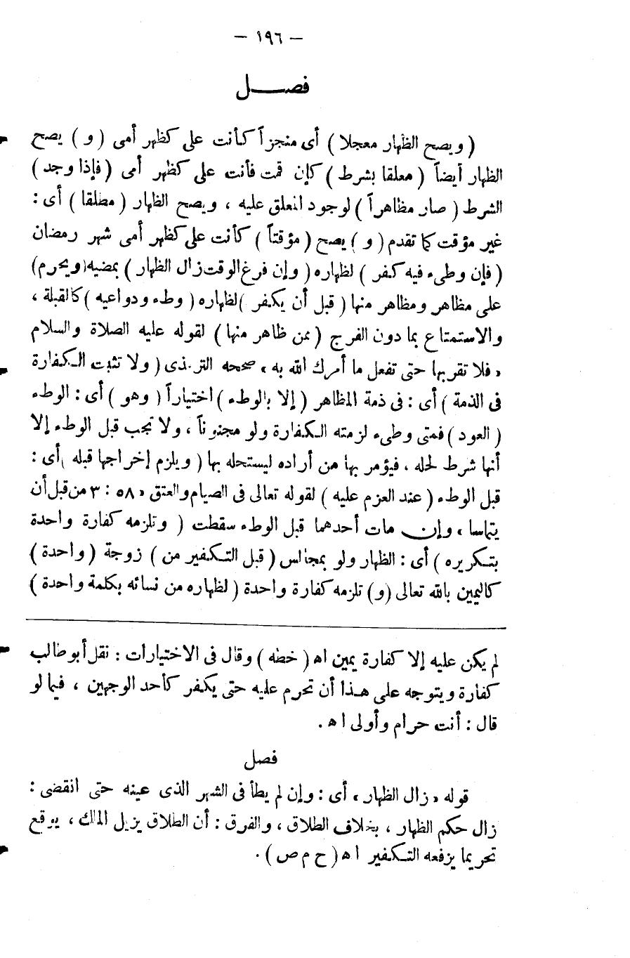 1 فصل (1) (وكفارته) أي كفارة الظهار على الترتيب (عتق رقبة فإن لم يجد صام شهرين متتابعين فإن لم يستطع أطعم ستين مسكينا) لقوله تعالى {والذين يظاهرون من نسائهم ثم يعودون لما قالوا فتحرير رقبة} من نسائه بكلمة واحدة)
