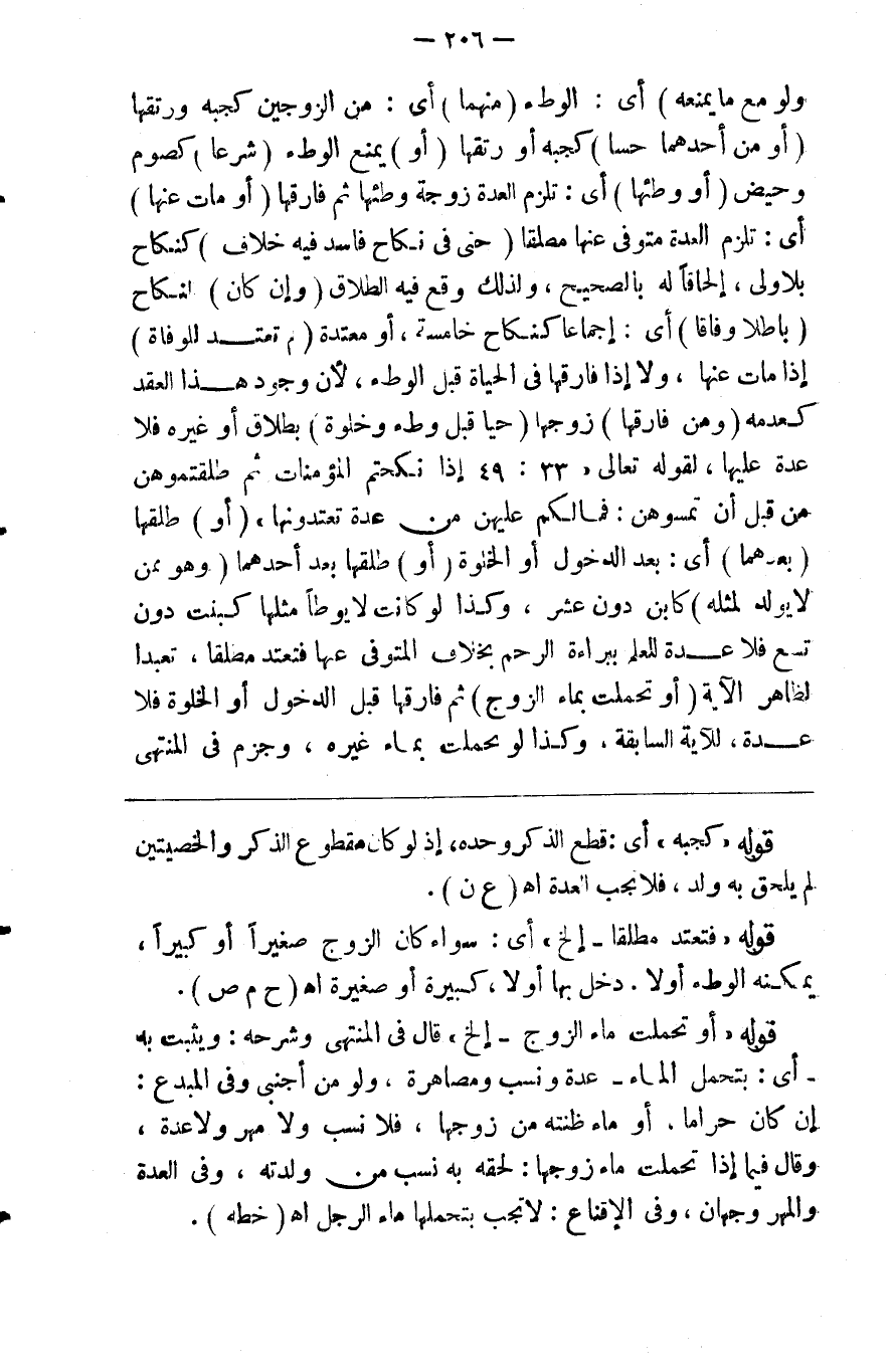 ولو مع ما يمنعه ) أي الوطء ( منهما ) أي من الزوجين كجبه ورتقها ( أو من أحدهما حسا ) كجبه أو رتقها ( أو ) يمنع الوطء ( شرعا ) كصوم وحيض ( أو وطئها ) أي تلزم العدة زوجة وطئها ثم فارقها ( أو مات عنها ) أي تلزم العدة متوفى عنها مطلقا ( حتى في نكاح فاسد فيه خلاف ) كنكاح بلا ولي إلحاقا له بالصحيح ولذلك وقع فيه الطلاق ( وإن كان ) النكاح ( باطلا وفاقا ) أي إجماعا كنكاح خامسة أو معتدة ( لم تعتد للوفاة ) إذا مات عنها وإلا إذا فارقها في الحياة قبل الوطء لأن وجود هذا العقد كعدمه ( ومن فارقها ) زوجها ( حيا قبل وطء وخلوة ) بطلاق أو غيره فلا عدة عليها لقوله تعالى { إذا نكحتم المؤمنات ثم طلقتموهن من قبل أن تمسوهن فما لكم عليهن من عدة تعتدونها } أو طلقها ( بعدهما ) أي بعد الدخول والخلوة ( أو ) طلقها ( بعد أحدهما وهو ممن لا يولد لمثله ) كابن دون عشر وكذا لو كانت لا يوطء مثلها كبنت دون تسع فلا عدة للعلم ببراءة الرحم بخلاف المتوفى عنها فتعتد مطلقا تعبدا لظاهر الآية ( أو تحملت بماء الزوج ) ثم فارقها قبل الدخول والخلوة فلا عدة للآية السابقة وكذا لو تحملت بماء قبلها ) أي قبل زوجته ( أو لمسها ) ولو بشهوة ( بلا خلوة ) ثم فارقها في الحياة ( فلا عدة ) للآية السابقة % 1 فصل