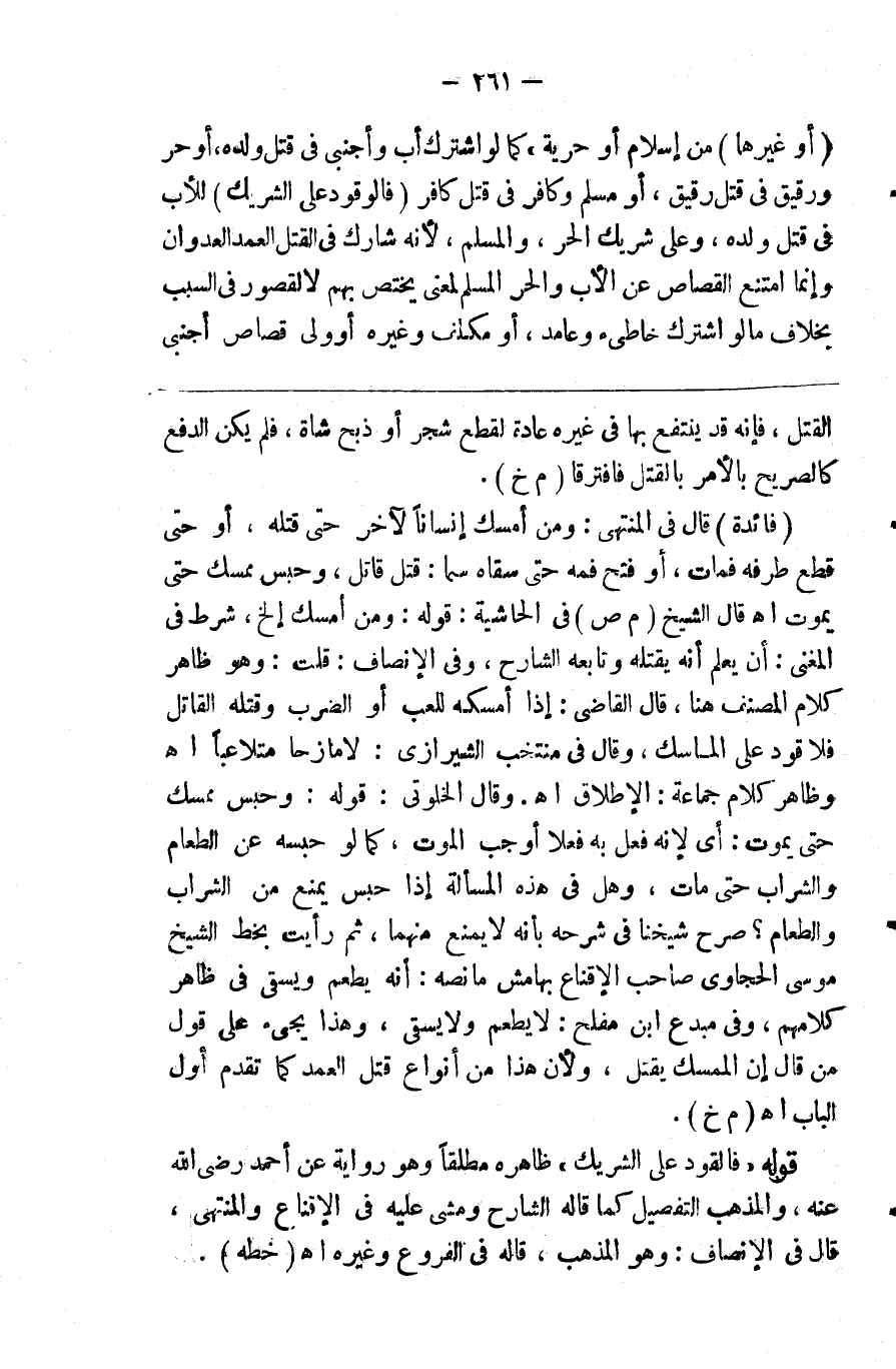 ( أو غيرهما ) من إسلام أو حرية كما لو اشترك أب وأجنبي في قتل ولده أو حر ورقيق في قتل رقيق أو مسلم وكافر في قتل كافر ( فالقود على الشريك ) للأب في قتل ولده وعلى شريك الحر والمسلم لأنه شارك في القتل العمد العدوان وإنما امتنع القصاص عن الأب والحر والمسلم لمعنى يختص بهم لالقصور في السبب بخلاف ما لو اشترك خاطئ وعامد أو مكلف وغيره أو ولي قصاص وأجنبي