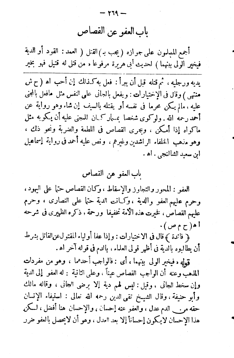أجمع المسلمون على جوازه ( يجب ب ) القتل ( العمد القود أو الدية فيخير الولي بينهما ) لحديث أبي هريره مرفوعا من قتل له قتيل فهو بخير