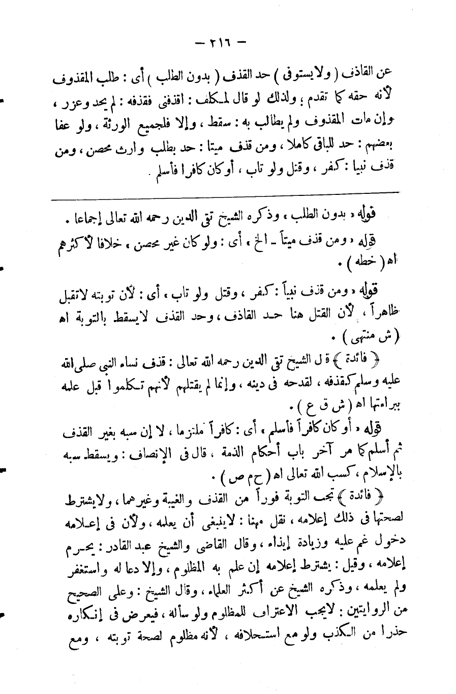 عن القاذف ( ولا يستوفى ) حد القذف ( بدون الطلب ) أي طلب المقذوف لأنه حقه كما تقدم ولذلك لو قال المكلف اقذفني فقذفه لم يحد وعزر وإن مات المقذوف ولم يطالب به سقط وإلا فلجميع الورثة ولو عفا بعضهم حد للباقي كاملا ومن قذف ميتا حد بطلب وارث محصن ومن قذف نبيا كفر وقتل ولو تاب أو كان كافرا فأسلم