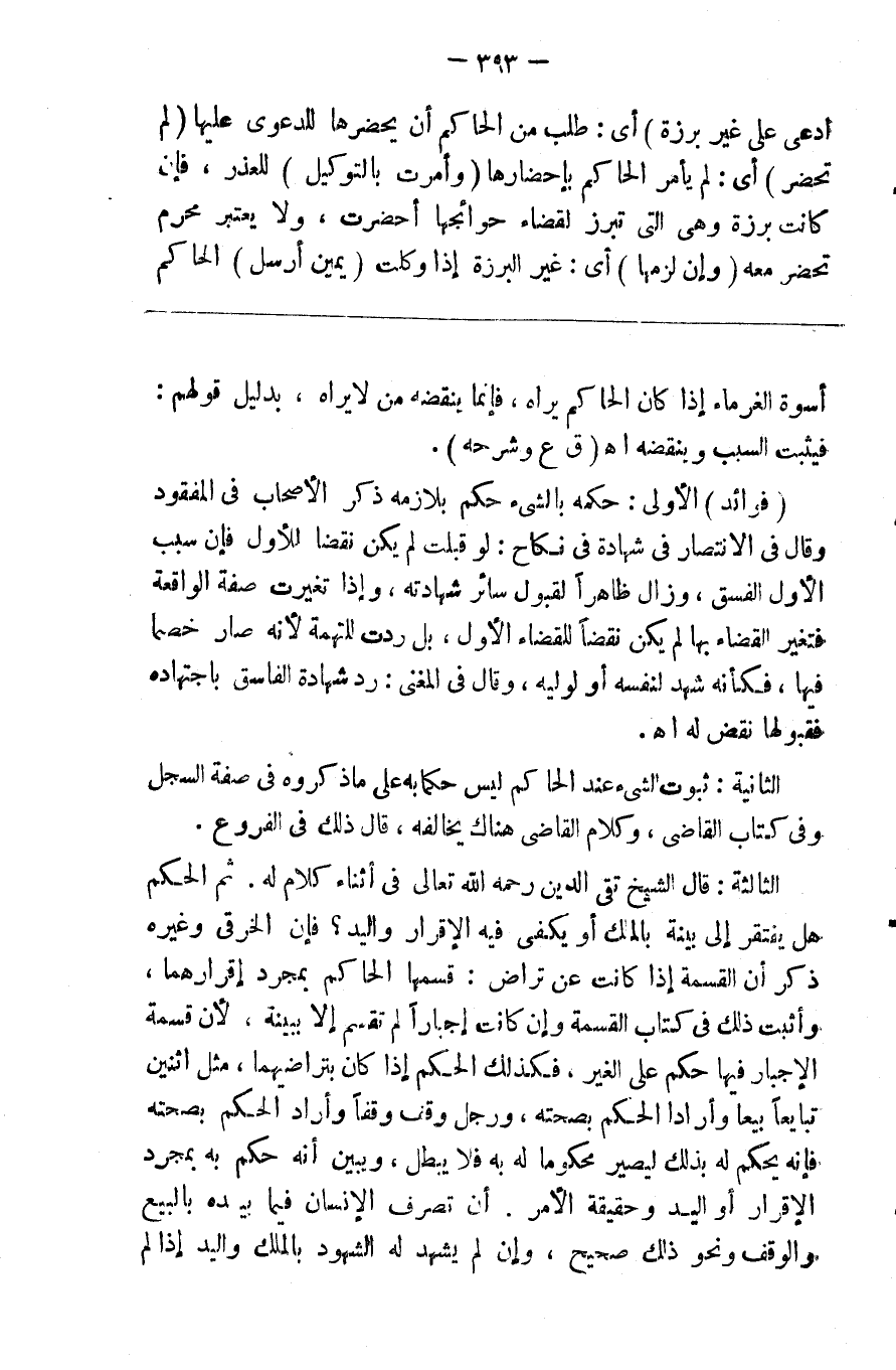 ادعى على غير برزة ) أي طلب من الحاكم أن يحضرها للدعوى عليها ( لم تحضر ) أي لم يأمر الحاكم بإحضارها ( وأمرت بالتوكيل ) للعذر فإن كانت برزة وهي التي تبرز لقضاء حوائجها أحضرت ولا يعتبر محرم تحضر معه ( وإن لزمها ) أي غير البرزة إذا وكلت ( يمين أرسل ) الحاكم