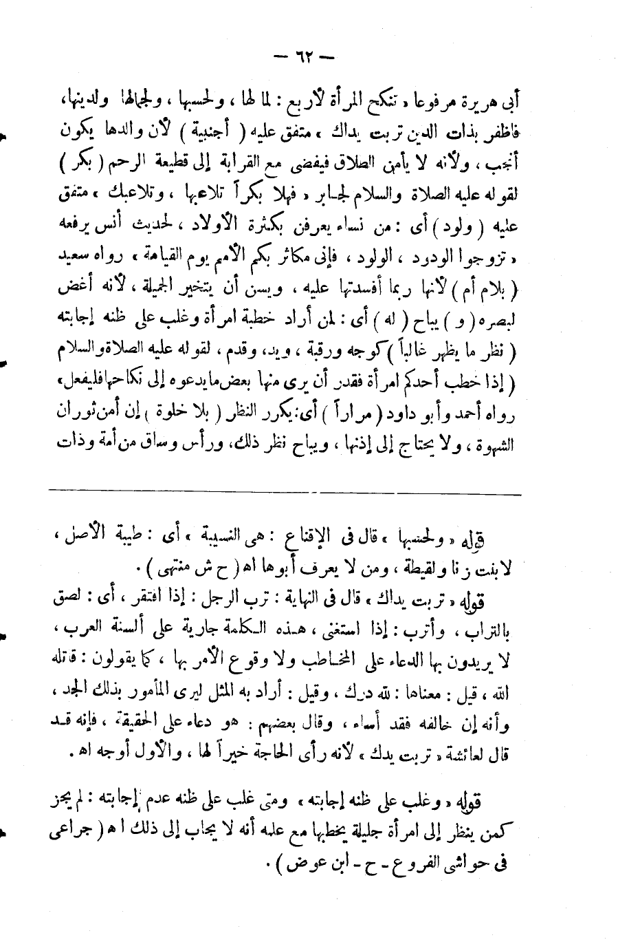 أبي هريرة مرفوعا تنكح المرأة لأربع لمالها ولحسبها ولجمالها ولدينها فاظفر بذات الدين تربت يداك متفق عليه ( أجنبية ) لأن ولدها يكون أنجب ولأنه لا يأمن الطلاق فيفضي مع القرابة إلى قظيعة الرحم ( بكر ) لقوله صلى الله عليه وسلم لجابر فهلا بكرا تلاعبها وتلاعبك متفق عليه ( ولود ) أي من نساء يعرفن بكثرة الأولاد لحديث أنس يرفعه تزوجوا الودود الولود فإني مكاثر بكم الأمم يوم القيامة رواه سعيد ( بلا أم ) لأنها ربما أفسدتها عليه ويسن أن يتخير الجميلة لأنه أغض لبصره الخطبة ( و ) يباح ( له ) أي لمن أراد خطبة امرأة وغلب على ظنه إجابته ( نظر ما يظهر غالبا ) كوجه ورقبة ويد وقدم لقوله صلى الله عليه وسلم إذا خطب أحدكم امرأة فقدر أن يرى منها بعض ما يدعوه إلى نكاحها فليفعل رواه أحمد وأبو داود ( مرارا ) أي يكرر النظر ( بلا خلوة ) إن أمن ثوران الشهوة ولا يحتاج إلى إذنها ويباح نظر ذلك ورأس وساق من أمه وذات