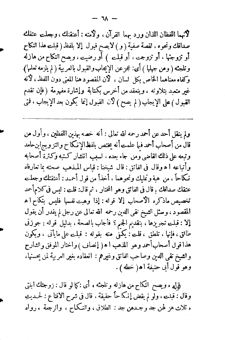 لأنهما اللفظان اللذان ورد بهما القرآن ولأمته أعتقتك وجعلت عتقك صداقك ونحوه لقصة صفية ( و ) لا يصح قبول إلا بلفظ ( قبلت هذا النكاح أو تزوجتها أو قبلت ) أو رضيت ويصح النكاح من هازل وتلجئة ( ومن جهلهما ) أي عجز عن الإيجاب والقبول بالعربية ( لم يلزمه تعلمهما وكفاه معناهما الخاص بكل لسان ) لأن المقصود هنا المعنى دون اللفظ لأنه غير متعبد بتلاوته وينعقد من أخرس بكتابة وإشارة مفهومة ( فإن تقدم القبول ) على الإيجاب ( لم يصح ) لأن القبول إنما يكون للإيجاب فمتى