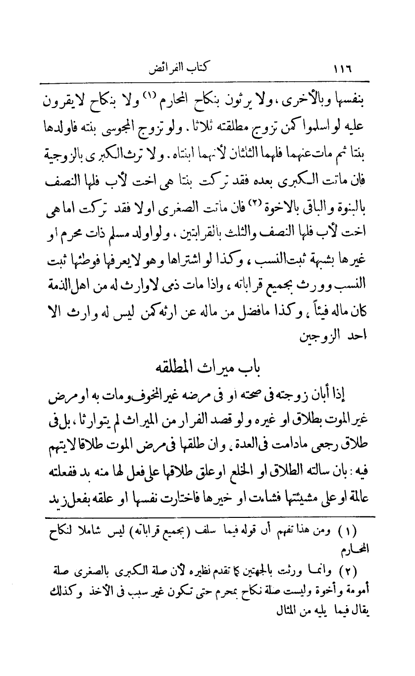 2 وإنما ورثت بالجهتين كما تقدم نظيره لأن صلة الكبرى بالصغرى صلة أمومة وأخوة وليست صلة نكاح بمحرم حتى تكون غير سبب في الأخذ وكذلك يقال فيما يليه من المثال.