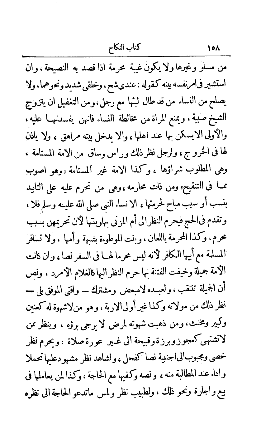 من مساوئ وغيرها ولا يكون غيبة محرمة إذا قصد به النصيحة وأن استشير في أمر نفسه بينه كقوله: عندي شح وخلقي شديد ونحوهما ولا يصلح من النساء من قد طال لبثها مع رجل ومن التغفيل أن يتزوج الشيخ صبية ويمنع المرأة من مخالطة النساء فأنهن يفسدنها عليه والأولى إلا يسكن بها عند أهلها وإلا يدخل بيته مراهق ولا يأذن لها في الخروج ولرجل نظر ذلك ورأس وساق من الأمة المستأمة وهي المطلوب شراؤها وكذا الأمة غير المستأمة "وهو أصوب مما في التنقيح" ومن ذات محارمه وهي من تحرم عليه على التأبيد بنسب أو سبب مباح لحرمتها إلا نساء النبي صلى الله عليه وسلم فلا وتقدم في الحج فيحرم النظر إلى أم المزني بها وبنتها لأن تحريمهن بسبب محرم وكذا المحرمة باللعان وبنت الموطوءة بشبهة وأمها ولا تسافر المسلمة مع أبيها الكافر لأنه ليس محرما لها في السفر نصا وأن كانت الأمة جميلة وخيفت الفتنة بها حرم النظر إليها كالغلام الأمرد ونصف أن الجميلة تنتقب ولعبده لا مبعض ومشترك - وأفتى الموفق بلى - نظر ذلك من مولاته وكذا غير أولى الأربة وهو من لاشهوة له كعنين وكبير ومخنث ومن ذهبت شهوته لمرض لا يرجى برؤه وينظر ممن لا تشتهي كعجوز وبرزة وقبيحة إلى غير عورة صلاة ويحرم نظر خصي ومجبوب إلى أجنبية نصا كفحل ولشاهد نظر مشهود عليها تحملا وأداء عند المطالبة منه ونصه وكفيها مع الحاجة وكذا لمن يعاملها في بيع وإجارة ونحو ذلك ولطبيب نظر ولمس ما تدعو الحاجة إلى نظره