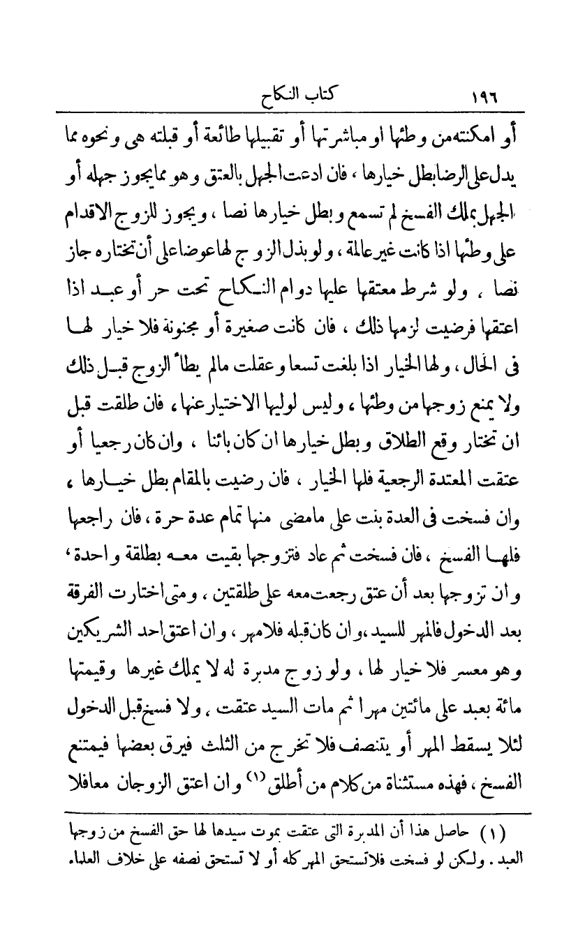 1 حاصل هذا أن المدبرة التي عتقت بموت سيدها لها حق الفسخ من زوجها العبد. ولكن لو فسخت المهر كله أو لا تستحق نصفه على خلاف العلماء في ذلك. ومعروف أن المدبرة تحسب حرة من ثلث مال سيدها. وإن المهر الذي تأخذه يعود على مال السيد بالزيادة. ومتى اتسع المال ترجح أن تخرج كلها عتيقة فإذا فسخت وسقط المهر فقد لا يتسع مال السيد لعتقها كلها. والشارع متشوف إلى حرية القن لتنفذ عليه جميع الاحكام الشرعية. فلذلك استثنيت هذه الصورة من حق الزوجة ومنعت من الفسخ فيها لتأخذ الصداق فيساعد على عتقها.