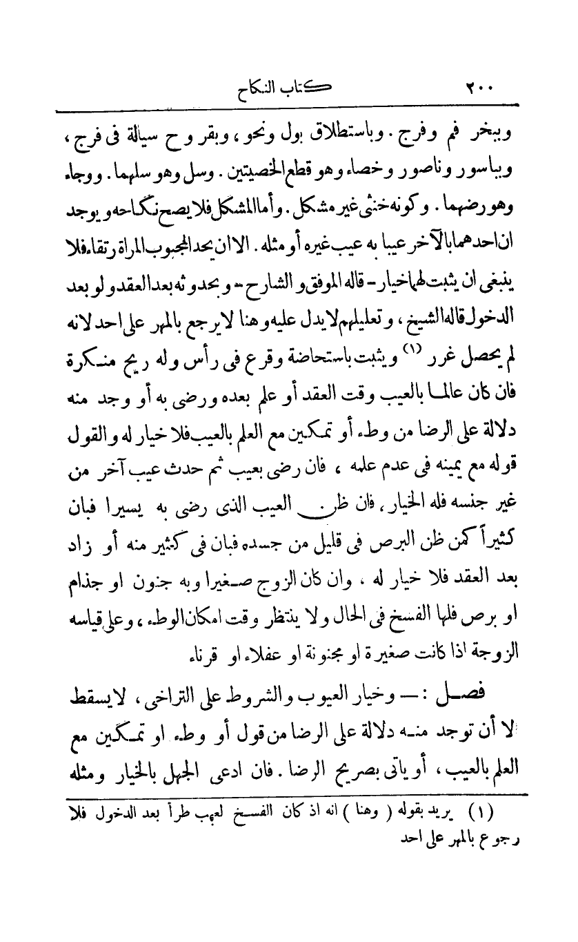وببخر فم وفرج وباستطلاق بول ونحو وبقروح سيالة في فرج وبباسور وناصور وخصاء وهو قطع الخصيتين وسل وهو سلهما ووجاء وهو رضهما وكونه خنثي غير مشكل وأما المشكل فلا يصح نكاحه ويوجد إن أحدهما بالآخر عيبا به عيب غيره أو مثله إلا أن يحد المجبوب المرأة رتقاء فلا ينبغي أن يثبت لهما خيار - قاله الموفق والشارح - وبحدوثه بعد العقد ولو بعد الدخول قاله الشيخ وتعليلهم لا يدل عليه وهنا لا يرجع بالمهر على أحد لأنه لم يحصل غرر1 ويثبت باستحاضة وقرع في رأس وله ريح منكرة فإن كان عالما بالعيب وقت العقد أو علم بعده ورضي به أو وجد منه دلالة على الرضا من وطء أو تمكين مع العلم بالعيب فلا خيار له والقول قوله مع يمينه في عدم علمه فإن رضي بعيب ثم حدث عيب آخر من غير جنسه فله الخيار فإن ظن العيب الذي رضي به يسيرا فبان كثيرا كمن ظن البرص في قليل من جسده فبان في كثير منه أو زاد بعد العقد فلا خيار له وإن كان الزوج صغيرا وبه جنون أو جذام أو برص فلها الفسخ في الحال ولا ينتظر وقت إمكان الوطء وعلى قياسه الزوجة إذا كانت صغيرة أو مجنونة أو عفلاء أو قرناء.